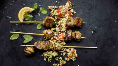 Brochettes d’agneau et poivrons cuisinés au piment d’Espelette