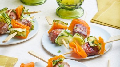 Mini-brochettes de gigot d’agneau aux légumes croquants