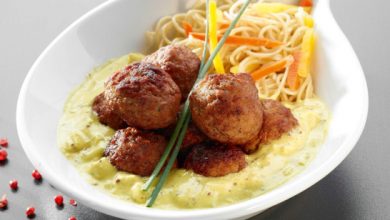Boulettes gourmandes, sauce oignons, moutarde et curry