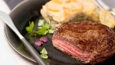 Tendre de bœuf, gratin de cèpes et pommes de terre