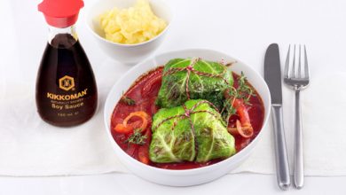 Paupiette de chou vert, sauce pain d’épice et tomate