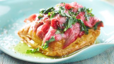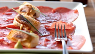 Carpaccio de bœuf, sauce Wasabi et croustillants de Shiitakes