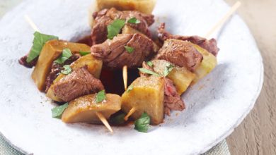Brochettes de bœuf à l’orange et aux oignons rouges