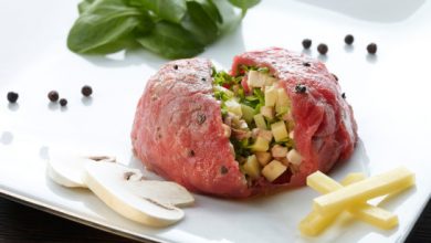 Appenzeller® croustillant & bœuf mariné sur une tranche de tomate cœur de bœuf