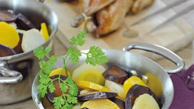 Cocotte de légumes anciens glacés au miel et cailles rôties