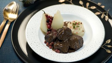 Pot-au-feu de chevreuil, purée légère de céleri au bouillon de chevreuil et aux herbes