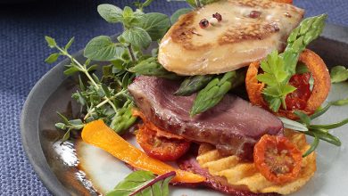 Équilibre de Magret et Foie Gras poêlé aux petits légumes
