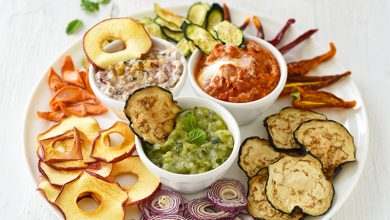 Chips de fruits et légumes maison avec leurs sauces