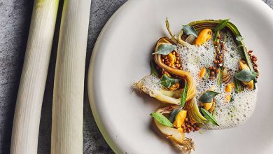 Poireau de Normandie confit, moules de Bouchot, beurre blanc au combava, huile de poireau et sarrasin