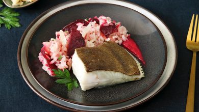 Turbot et risotto à la betterave