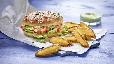 Burger aux crevettes et sauce Pesto accompagné de Côté Chef