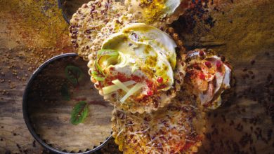 Crackers aux graines et au Beaufort, crème épicée