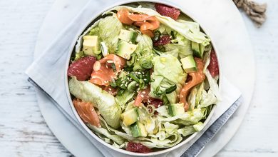 Salade Iceberg Florette® saumon, pamplemousse, oignons nouveaux et vinaigrette citron-curry