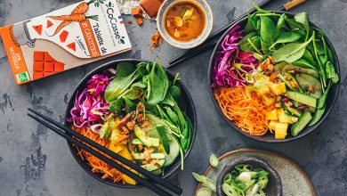 Healthy bowl à la thaï, sauce épicée à la carotte