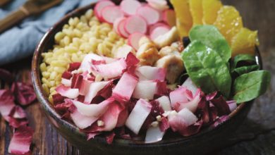 Poke bowl d’endives rouges et vinaigrette à l’orange