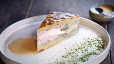 Pressé de pommes de terre aux champignons et volaille, sauce vin jaune