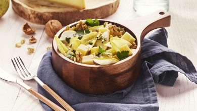 Salade d’endives, dés de Raclette de Savoie IGP, poire fraîche et vinaigrette aux noix