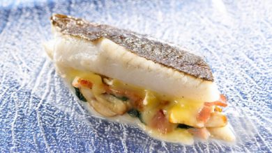 Boudin de poisson aux pistaches et à la Fleur de Sel de Guérande Le Guérandais, écume de citron vert