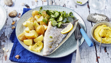 Filet de daurade poché accompagné d’une sauce aïoli pommes de terre primeurs