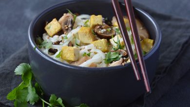 Healthy bowl à la thaï, sauce épicée à la carotte