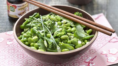 Salade de légumes verts, vinaigrette soja sésame