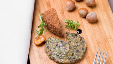 Cœur de Lion pané aux noisettes condiment moutarde et girolles