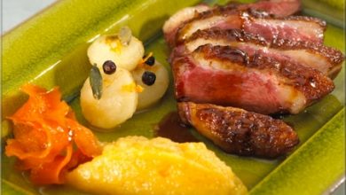 Magrets de Canard aux Épices, Purée de Navets Glacés
