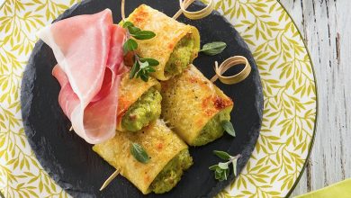 Brochettes de paccheri farcies au Jambon de Parme et à la crème d’asperges