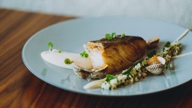 Cabillaud rôti, mousseline de chou-fleur, coulis de cresson