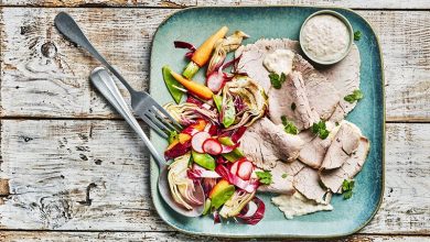 Émincé de veau fondant, crème d’artichaut moutardée et jeunes légumes à crus