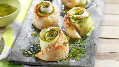 Rouleaux de sabre et courgette vapeur, sauce citron et coriandre