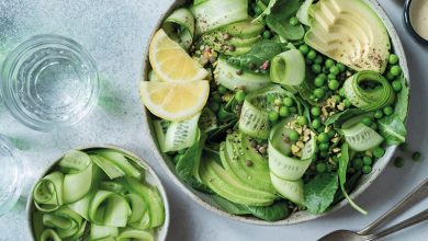 Salade verte aux lentilles du Puy petits pois, concombre, avocat et épinards