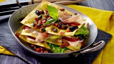 Cannellonis d’asperges vertes et blanches et jambon fumé