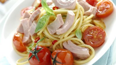 Spaghettis sautés au thon et tomates cerise