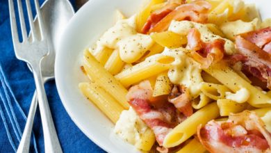 Penne à la pancetta, sauce à la Raclette RichesMonts