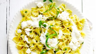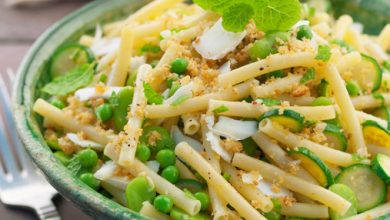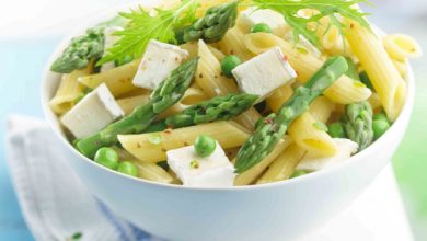 Salade de pâtes, asperges, pois et Caprice des Dieux