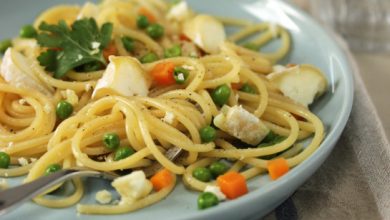 Spaghettis au crottin de Chavignol et aux petits légumes
