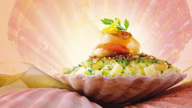 Cassolette de Saint-Jacques, coquillettes au Beaufort comme un risotto