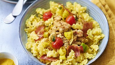 Curry de Coquillettes Royales au poulet, poireaux et lait de coco