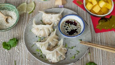 Raviolis aux crevettes et à la mangue