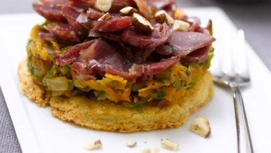 Gésiers caramélisés sur crousti-moelleux de légumes