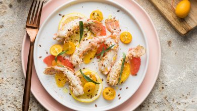 Poêlée de saumon mariné, épeautre, légumes du soleil
