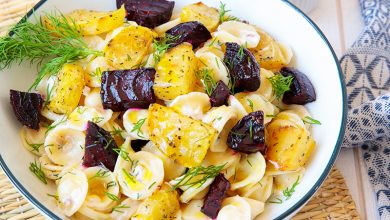 Orecchiette à la crème et betteraves rôties à l’aneth