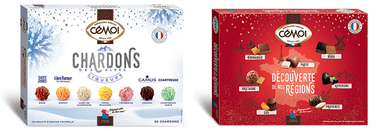 CÉMOI a entièrement revu le design de ses boîtes de Chardons, Découverte de nos Régions, Orangettes et Cirtonnettes. Elles sont plus festives et modernes pour séduire toutes les générations de gourmands !