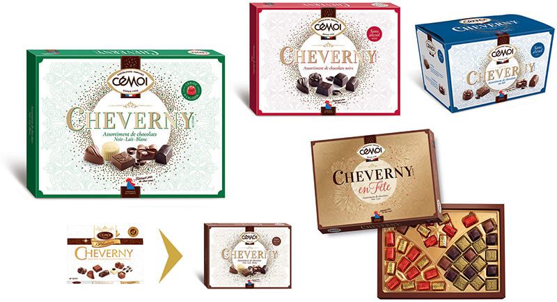CÉMOI modernise sa gamme historique de Cheverny en lui offrant un nouvel habillage et des recettes revisitées avec des chocolats majoritairement sans alcool. La gamme est proposée dans de nouveaux formats aisément identifiables grâce à leurs couleurs distinctes. Cette gamme revisitée enregistre 78% d’intention d’achat de la part des acheteurs de chocolats de Noël ! (Étude Future Thinking – août 2019 – cible acheteurs de chocolats de Noël)