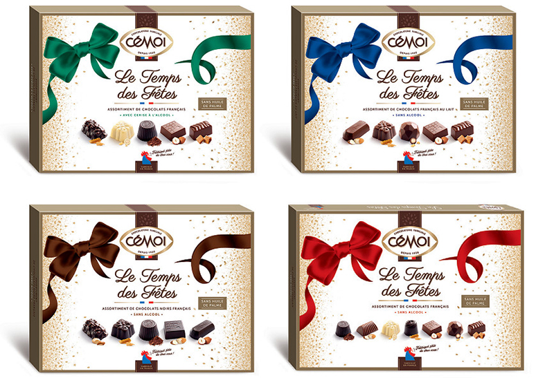 NOËL DURABLE : en droite ligne avec sa démarche durable, CÉMOI propose une nouvelle gamme de chocolats sans huile de palme avec des recettes majoritairement sans alcool. Baptisés « Le Temps des Fêtes », ces coffrets au design festif plairont à toute la famille et s’adapteront à toutes les situations avec des formats allant du mini 183 g au maxi 945 g !