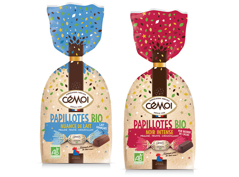 Lancées en 2019, les papillotes bio de CÉMOI remportent un franc succès auprès des consommateurs. Ils apprécient ces bonbons de chocolat enveloppés individuellement avec leurs traditionnelles devinettes !
