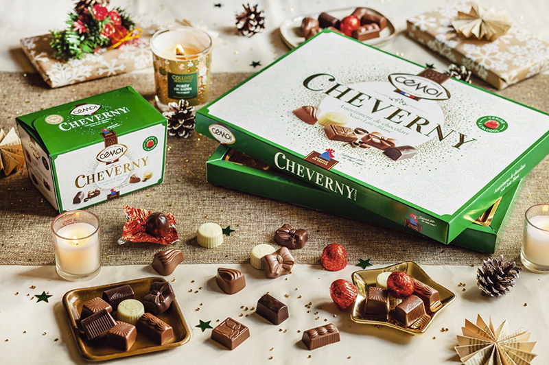 Cheverny est la gamme historique et emblématique de Cémoi à Noël ! C’est la marque traditionnelle et conviviale, présente depuis près de 50 ans en France. Dans un univers festif et royal, chaque assortiment est facilement identifiable grâce à la couleur qu’il arbore. La gamme Cheverny répond à toutes les envies : pour se faire plaisir, à partager ou à offrir, avec des formats allant du ballotin de 208 g au maxi-coffret de 893 g !