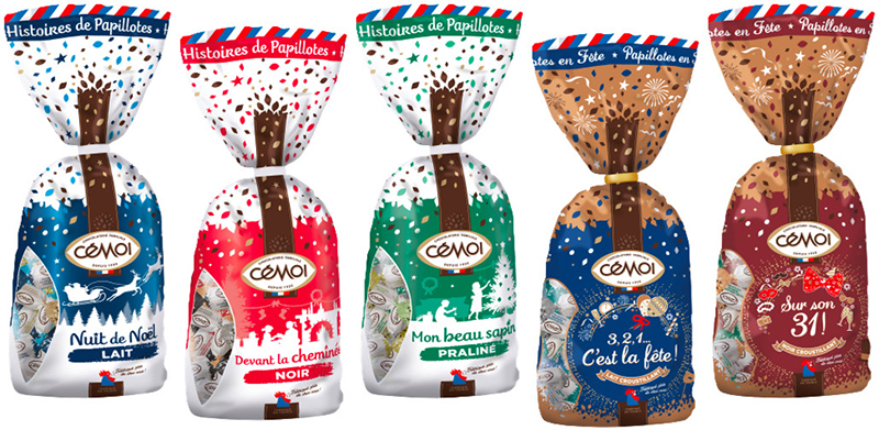 Les papillotes Cémoi, ce sont plusieurs gammes qui nous invitent à célébrer les fêtes de fin d’année ! Histoires de Papillotes, un univers féérique, qui in- carne la magie de Noël et à partager en toute simplicité ! Ainsi que Papillotes en Fête, la gamme festive pour offrir ou recevoir comme il se doit !