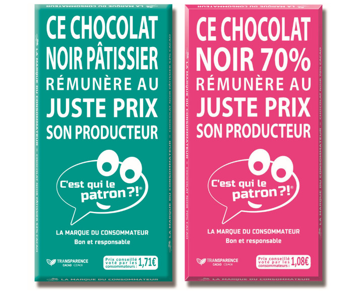 C’est qui le patron des tablettes de chocolat ? CÉMOI ! Le groupe familiale CÉMOI, 1er chocolatier en France, a été sélectionné par la Marque « C’est qui le patron ?! » pour la production de ses 2 nouvelles tablettes de chocolat dès à présent disponibles en magasins ! En effet, la démarche responsable « de la cabosse à la tablette de chocolat » dans laquelle est engagée CÉMOI à travers son programme Transparence Cacao, répond parfaitement aux attentes des consommateurs qui ont eux-mêmes décidé des critères de réalisation de ces tablettes.